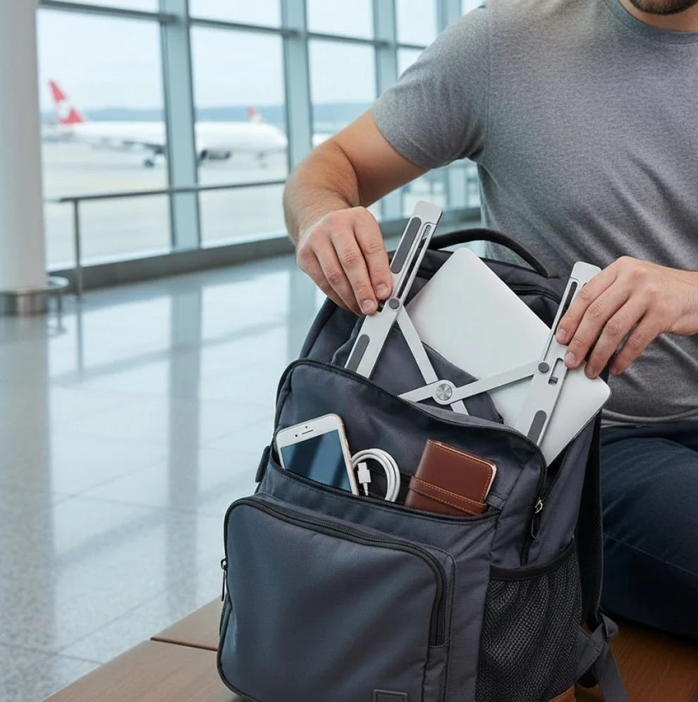 Upgrade your work and viewing comfort with the Metal Portable Laptop Stand – 6-Angle Adjustable Riser. Built from high-quality metal alloy, this sturdy stand offers six adjustable height and angle levels to help maintain proper posture, reduce neck and back strain, and improve airflow for better device cooling.